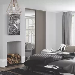Spacepro Classic 2-Door Sliding Wardrobe Door Kit Stone Grey Frame Mirror Panel 1489 x 2260mm