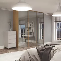 Spacepro Classic 3-Door Sliding Wardrobe Door Kit Oak Frame Mirror Panel 2672 x 2260mm