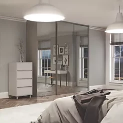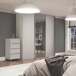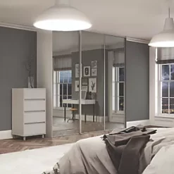Spacepro Classic 3-Door Sliding Wardrobe Door Kit Stone Grey Frame Mirror Panel 1760 x 2260mm