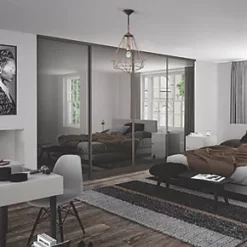 Spacepro Classic 4-Door Sliding Wardrobe Door Kit Stone Grey Frame Mirror Panel 2370 x 2260mm