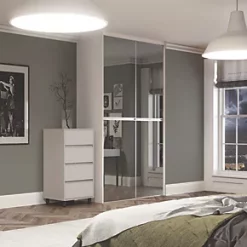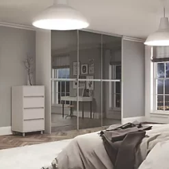 Spacepro Minimalist 2-Door Sliding Wardrobe Door Kit Silver Frame Mirror Panel 1512 x 2260mm