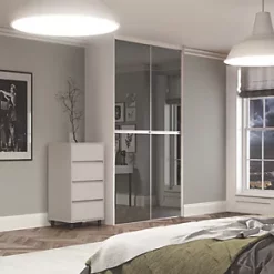 Spacepro Minimalist 2-Door Sliding Wardrobe Door Kit Silver Frame Mirror Panel 1816 x 2260mm