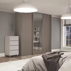 Spacepro Shaker 3-Door Sliding Wardrobe Door Kit Stone Grey Frame Mirror Panel 1680 x 2260mm