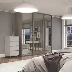 Spacepro Shaker 3-Door Sliding Wardrobe Door Kit Cashmere Frame Mirror Panel 2136 x 2260mm