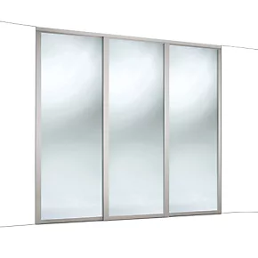 Spacepro 3-Door Sliding Wardrobe Door Kit Dove Grey Frame Mirror Panel 1680 x 2260mm