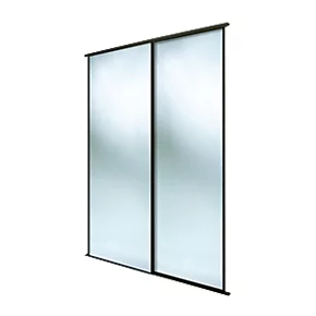 2 classic, black framed mirror, sliding wardrobe doors. Ready assembled to fit onto matching trackset supplied.