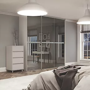 Spacepro Minimalist 3-Door Sliding Wardrobe Door Kit Silver Frame Grey Tinted Mirror Panel 2262 x 2260mm