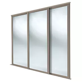 Spacepro Shaker 3-Door Sliding Wardrobe Door Kit Stone Grey Frame Mirror Panel 2592 x 2260mm