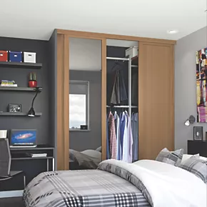 Spacepro Shaker 3-Door Sliding Wardrobe Doors Oak Frame Oak / Mirror Panel 2136 x 2260mm