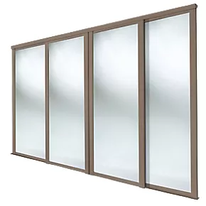 Spacepro Shaker 4-Door Sliding Wardrobe Door Kit Stone Grey Frame Mirror Panel 2898 x 2260mm